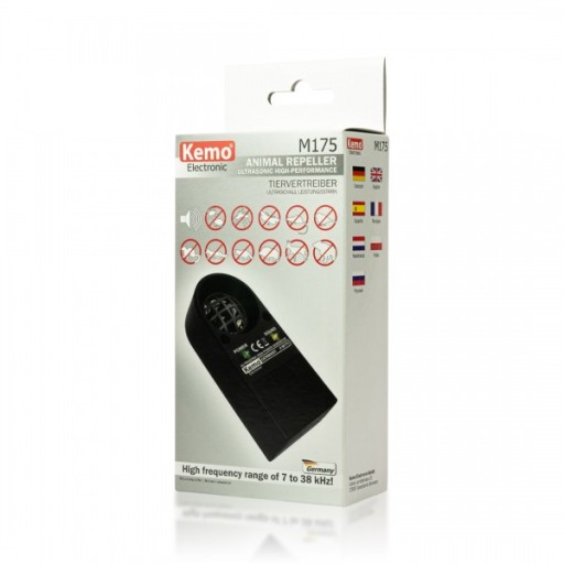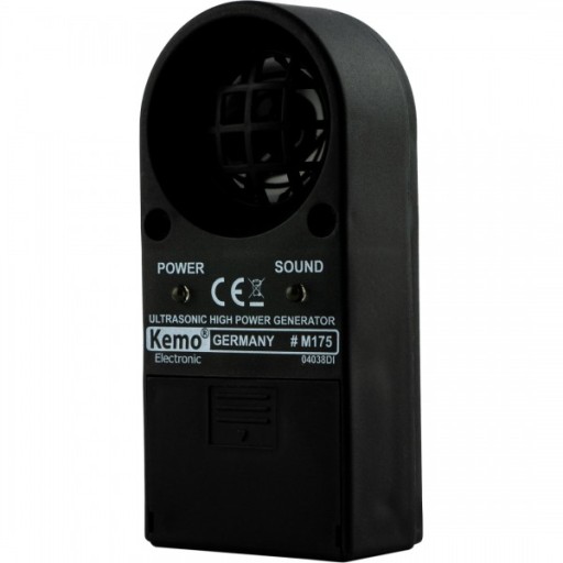 KEMO M175 to niezwykle skuteczny niemiecki generator ultradźwiękowy, który skutecznie odstraszy z dużej odległości takie zwierzęta jak: koty, psy, kuny, ptaki, gryzonie, wydry, zające, lisy, dziki, sarny, jelenie czy bobry.