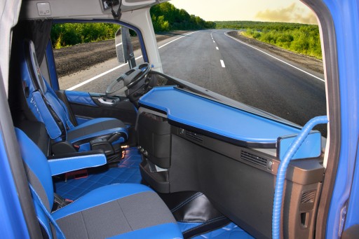 VOLVO FH 4 2014 DUŻA MAX NISKA - NIEBISKA ECO SKÓRA / SKAJ