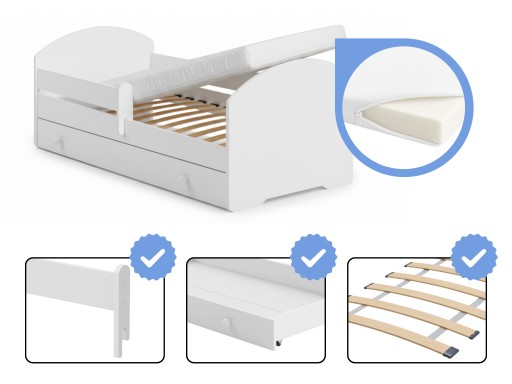 ✅ Zabezpieczenie boczne - Odpowiednia wysokość boków stworzona dla bardziej ruchliwych śpiochów, chroni dziecko przed przypadkowym wypadnięciem z łóżka.
