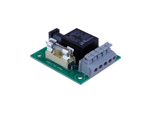 Na płytce modułu znajduję się bezpiecznik topikowy o odpowiedniej moc, oraz gniazdo zasilające układ 12VDC.