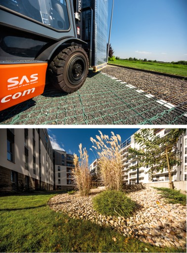 Dzięki kratownicom z serii Inovgreen teren naszej inwestycji pozostaje terenem w 91% przepuszczalnym, biologicznie czynnym gdzie nie istnieje konieczność odprowadzania wód gruntowych, jak np. w przypadku kratki parkingowej plastikowej.