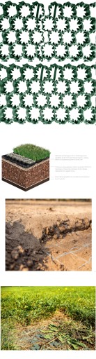 - Trawa: Wypełnić kratki ziemią, mieszaniną torfu i piasku lub innym materiałem odpowiednim do obsiania trawą. Dla lepszego rezultatu nasiona trawy wymieszać z podłożem przed wypełnieniem kratek. Trawa powinna się dobrze ukorzenić, zanim udostępnimy teren inwestycji dla ruchu kołowego.