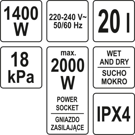 Odkurzacz warsztatowy YATO o mocy 1400W i mocy ssania 18 kPa. Posiada zbiornik o pojemności 20 L. Odkurzacz wyposażony jest w teleskopową, antystatyczną rurę, co zdecydowanie wpływa na duży komfort pracy. Odkurzacz ma możliwość czyszczenia zarówno na mokro, jak i na sucho - sprawdzi się w każdych, nawet najbardziej uciążliwych i trudnych warunkach. Urządzenie została również w funkcję dmuchawy, dzięki czemu można nim czyścić narzędzia z pyłu lub usuwać zanieczyszczenia i brud z trudno dostępnych miejsc.