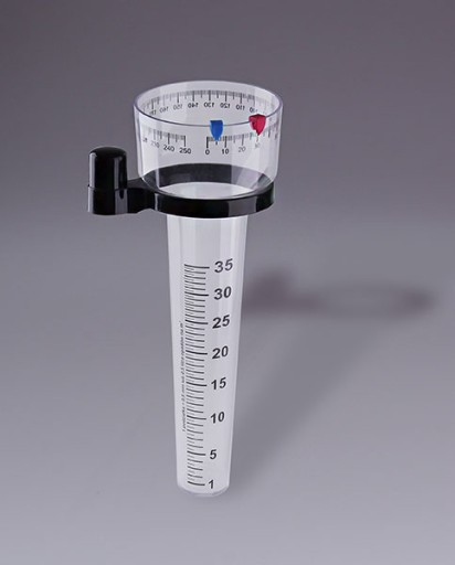 - Skala ze zwiększoną dokładnością umożliwia jednorazowy pomiar opadu do 35 mm/m2.
