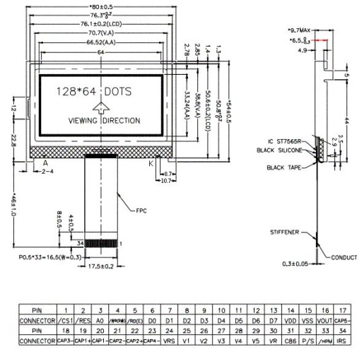 ART LCD графический 128x64-A COG LED b/l-A/KK 3,3В