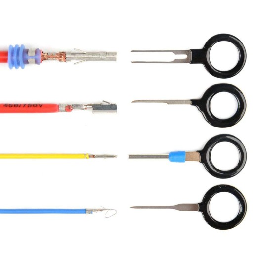 Uniwersalny zestaw wyjmaków do demontażu wszystkich rodzajów kostek elektrycznych i wtyczek.