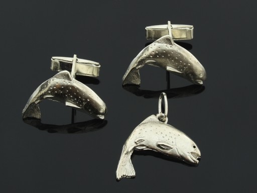 Посеребренные запонки - РЫБА ФОРЕЛЬ