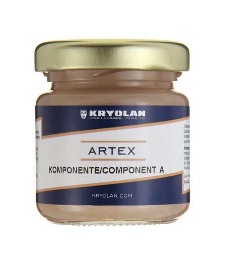 ARTEX marki KRYOLAN (wiodącej na całym świecie profesjonalnej marki oferującej wysokiej jakości kosmetyki charakteryzatorskie, kolorowe i pielęgnacyjne). Preparat dwuskładnikowy to tworzenia imitacji skóry. Idealnie sprawdza się podczas tworzenia ran i blizn, poparzeń. Sprawdzi się podczas maskowania defektów skóry. Odpowiednio nałożony umożliwia osiągnięcie efektu 3D. Po aplikacji staje się elastyczny i nie przeszkadza w noszeniu (również w newralgicznych miejscach). Posiada bezbarwną konsystencję, którą łatwo pokryć kosmetyczną farbą do malowania twarzy. Aby uzyskać produkt końcowy należy połączyć (w równych częściach 1:1) obydwa składniki (A i B). Uzyskaną mieszankę aplikuje się bezpośrednio na skórę. Proces utwardzania rozpoczyna się po 5-6 minutach. Kiedy substancja wyschnie można przystąpić do malowania. W celu usunięcia sztucznej skóry, wystarczy delikatnie pociągnąć. Zestaw należy przechowywać w suchym i chłodnym miejscu w oryginalnym słoiczku.