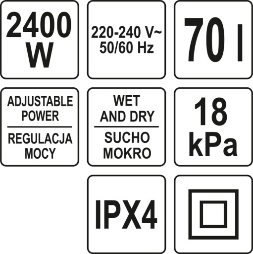 ODKURZACZ PRZEMYSŁOWY 70L - 2400W DO PRACY NA SUCHO I NA MOKRO