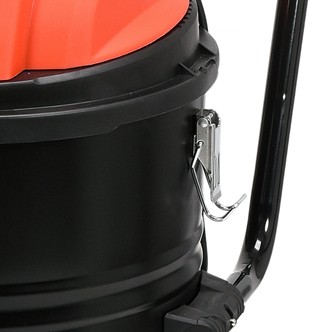 Obudowa odkurzacza została wykonana z trwałych, metalowych materiałów, dzięki czemu odkurzacz jest odporny na uszkodzenia zewnętrzne. Pokrywa odkurzacza zamykana jest na solidne, metalowe zatrzaski. Zapobiega to niechcianemu i przypadkowemu otwarciu pokrywy. Zatrzaski gwarantują też solidność pracy oraz zapobiegają dostaniu się do środka niechcianych elementów.