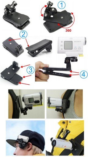 - obrotowy klips 360 stopni do montażu kamery