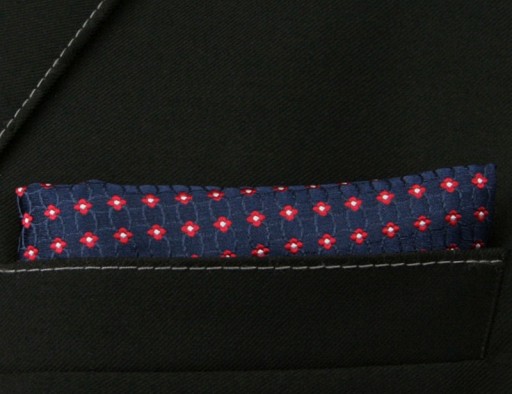 Ciemnogranatowa Elegancka, Męska Poszetka - ALTIES - w Czerwone Kwiatki, Motyw Florystyczny