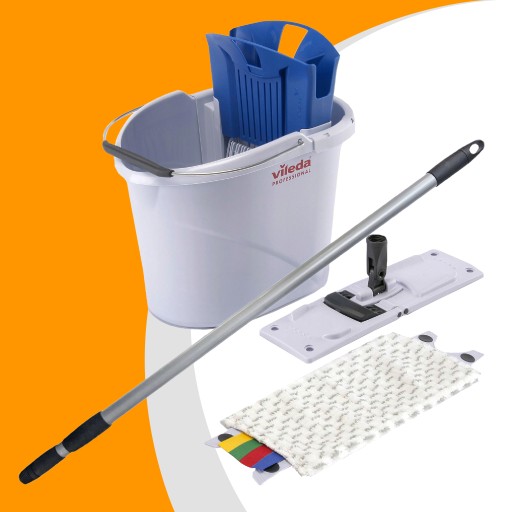 Uwaga! Zestaw należy do linii profesjonalnej (Vileda Professional – kolor niebieski), a nie standardowej (Vileda Consumer – kolor czerwony), co znaczy, że cechuje się podwyższoną wytrzymałością i odpornością.