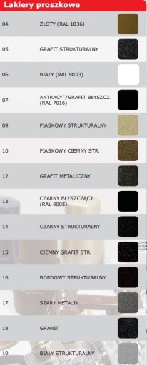 W tej cenie można zamówić kolor zaworu z palety obok kolorów - lakier proszkowy
