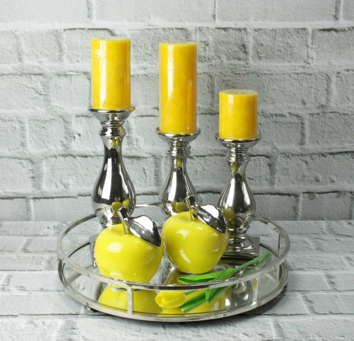 Piękny ceramiczny świecznik w srebrnym kolorze.