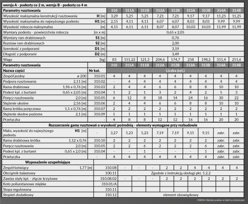 Wymiary rusztowania 0,75/0,86 x 2,0.