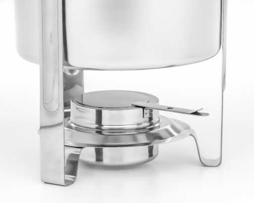 Podgrzewacz stołowy okrągły na zupę o pojemności 11 l marki Forgast. Wykonany ze stali nierdzewnej o grubości 0,6 mm (pokrywa ze stali 0,9 mm). Rama ze stali nierdzewnej o grubości 2 mm. Podgrzewacz podgrzewany paliwem. W wyposażeniu pojemnik na puszkę paliwa.