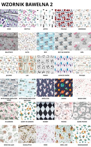 Prześcieradło można samemu zaprojektować wybierając wzory z poniższego wzornika.