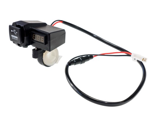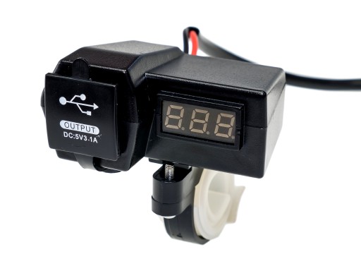 Podwójne gniazdo USB 5 V / 3.1 A zintegrowane z woltomierzem do montażu na kierownicy motocykla, skutera, quada.