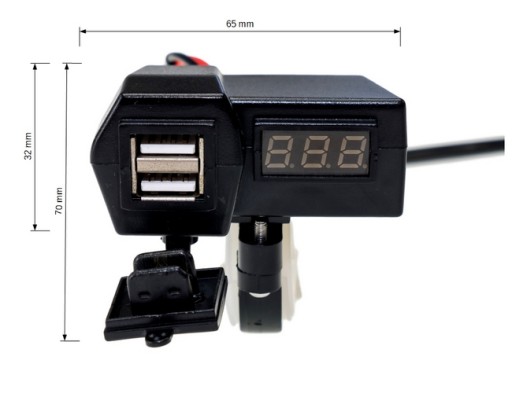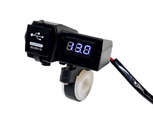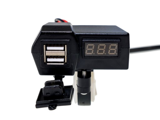 Podwójne gniazdo USB 5 V / 3.1 A zintegrowane z woltomierzem do montażu na kierownicy motocykla, skutera, quada.