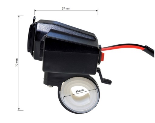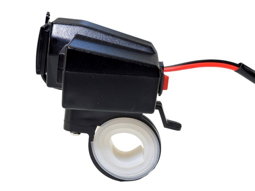 - Gniazda USB 5V umożliwia zasilanie i ładowanie dwóch urządzeń np. smartfon, nawigacja GPS, odtwarzacz mp3, Power bank standardowym kablem USB/mikro USB z instalacji elektrycznej motocykla 12 V.