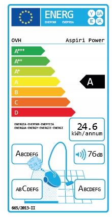 Wysoką jakość odkurzacza bezworkowego Aspiri Power potwierdza klasa energetyczna A. Określa ona stosunek poboru energii przez odkurzacz do jego efektywności. Klasa A oznacza , że odkurzacz cechuje się bardzo wysoką skutecznością czyszczenia przy małym zużyciu prądu. Oznacza to wyraźne oszczędności w rachunkach za prąd nawet przy rzadkim używaniu odkurzacza