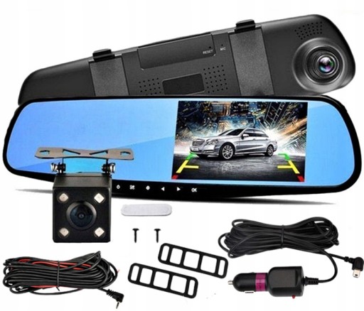 Urządzenie wielofunkcyjne do montażu wewnątrz pojazdu na oryginalnym lusterku. Na lustrze umieszczony został duży, 4,3 calowy wyświetlacz, dzięki któremu możemy oglądać to co dzieje się przed pojazdem i bezpośrednio za nim. Urządzenie posiada funkcję kamery cofania. Po wrzuceniu biegu wstecznego na naszym wyświetlaczu automatycznie pojawi się obraz z tylnej kamery wraz z liniami pomocniczymi do parkowania. Kolejną przydatna funkcją jest jednoczesne nagrywanie z obu kamer. Nagrania zapisywane są na karcie pamięci, a odtworzyć je można bezpośrednio na urządzeniu lub wkładając kartę pamięci do komputera