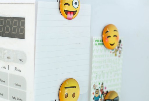 Urocze magnesy na lodówkę z emotkami. Mają wypukły kształt, są starannie wykonane. Doskonale sprawdzą się do tablic magnetycznych.