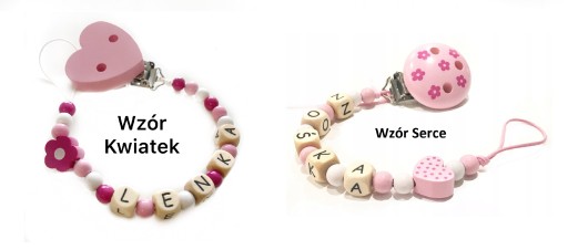 Zawieszki do smoczka drewniane, z imieniem lub bez, zawieszki wykonane z naturalnego drewna,koraliki lakierowane z atestem,sznurek poliestrowy.