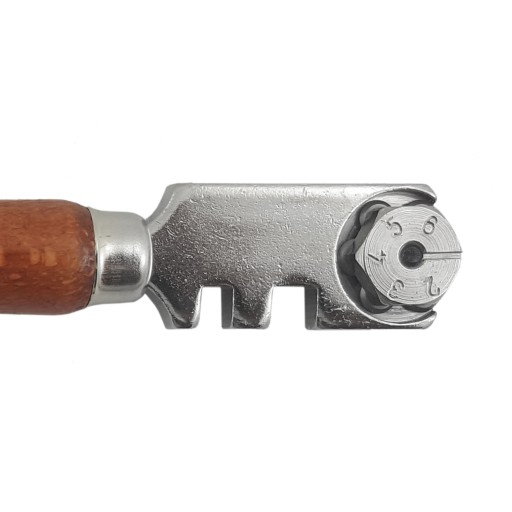 Posiada sześć wymiennych kółek tnących o podwyższonej wytrzymałości z walcowanej stali hartowanej.