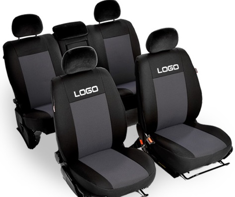 Dodatkowo na przednich fotelach jest umieszczony haft informujący, do jakiego modelu pokrowce są przeznaczone (haft dopasowany jest do koloru materiału).