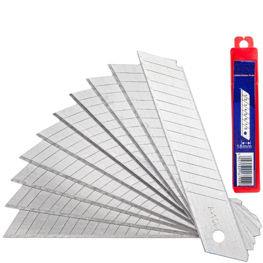 ЛЕЗВИЯ НОЖА ЛЕЗВИЕ СМЕННОЕ, ЛОМАТОЕ, ПЕРЕЗАРЯЖАЕМОЕ, ПРИКЛАД 18 мм, 10 шт.