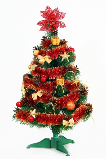 Choinka sztuczna ma wysokość około 50 cm.