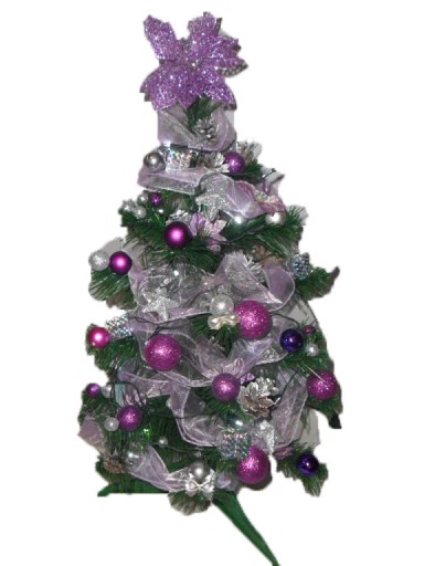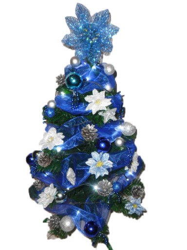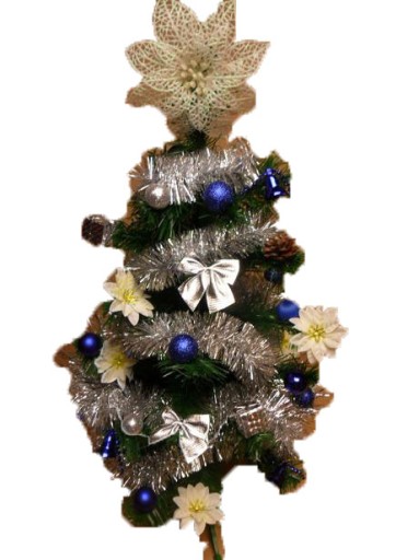 Wykonujemy choinki z dekoracją w kolorze: srebrnym, białym, złotym, niebieskim, czerwonym, brązowym, zielonym, fioletowym lub mieszanym.