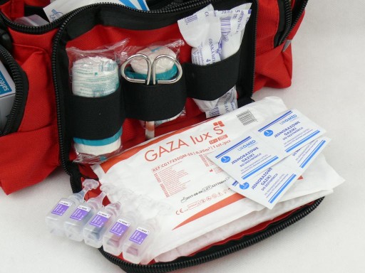 Apteczka polskiej produkcji z polskimi opatrunkami, znacznie lepszymi od pseudo "niemieckich" zestawów DIN.