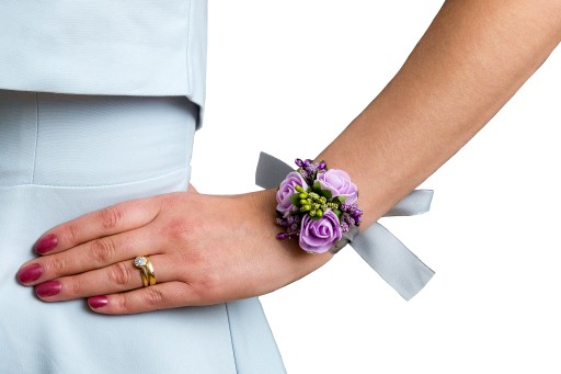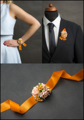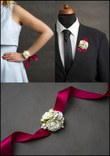 Wykonane z naturalnie wyglądających różyczek oraz efektownych dodatków florystycznych wykończonych okazałą wstążką gwarantują oryginalny wygląd na weselu czy studniówce.
