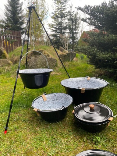 ORYGINALNY KOCIOŁEK WĘGIERSKI EMALIOWANY 20L + STOJAK 120cm + POKRYWKA