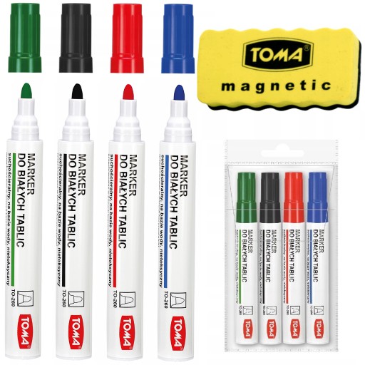 Zestaw markerów suchościeralnych TO-260 + gąbką magnetyczna do tablic suchościeralnych