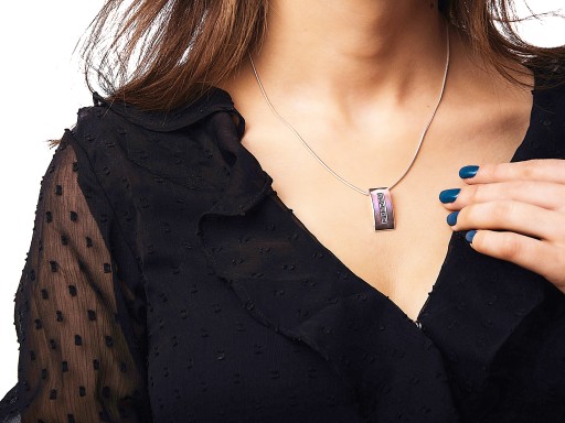 - Wisiorek o długości 26 mm. Szerokość 12,5 mm.
