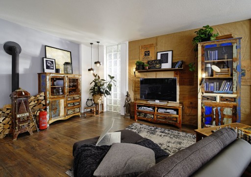 Meble z serii posiadają szuflady bez metalowych prowadnic. Pomimo tego, drewniane szyny i metalowe uchwyty zapewniają wygodę, a specjalna stopka zamontowana na tylnej ściance uniemożliwi całkowite wysunięcie szuflady. Meble z serii SPIRIT, wykonane w całości z drewna wprowadzą do Państwa mieszkania wyjątkowy nastrój oraz atmosferę rustykalnego stylu w jakim zostały zaprojektowane.