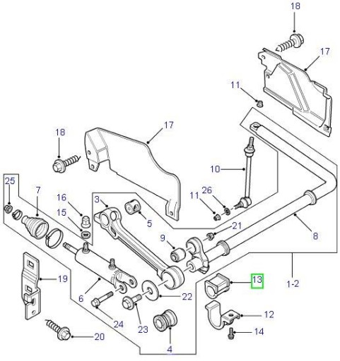 Oferowana przez nas tuleja gumowa na poniższym schemacie widoczna jest pod nr 13: