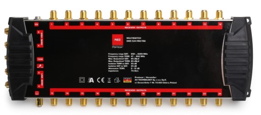 Pozłacane gniazda w sposób istotny zmniejszają straty sygnału na przyłączu kabli antenowych, oraz brak zjawiska utleniania. Zasilanie multiswitcha odbywa się za pośrednictwem zewnętrznego zasilacza dzięki czemu wyeliminowane jest zjawisko zwiększonej temperatury pracy będące częstym powodem uszkodzeń urządzenia.