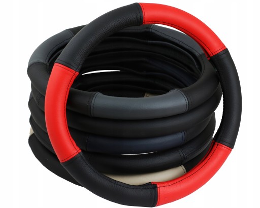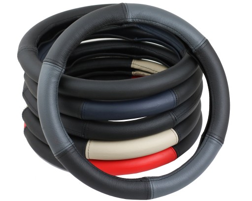 Pokrowiec na kierownicę został wykonany ze specjalnego gumowego pierścienia oraz wysokogatunkowej skóry naturalnej. Elementy są ze sobą zszyte mocnymi nićmi używanymi w tapicerstwie samochodowym. Ergonomiczny kształt sprawia, że pokrowiec jest bardzo wygodny oraz świetnie trzyma się w dłoni podczas jazdy. Zastosowanie najwyższej jakości materiałów sprawia, że pokrowiec służy przez długie lata i świetnie prezentuje się w samochodzie.