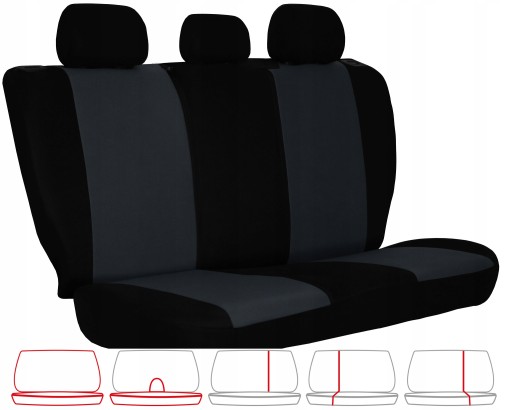 Oferta dotyczy modeli z fotelami standardowymi i kanapą z tyłu - pokrowce nie są przystosowane na fotele kubełkowe i fotele pojedyncze w drugim rzędzie.
