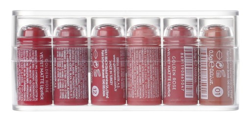 W skład kompletu wchodzą następujące miniatury pomadek Velvet Matte: 01, 02, 10, 12, 14, 19.Pełnowymiarowy produkt można odnaleźć TUTAJ.