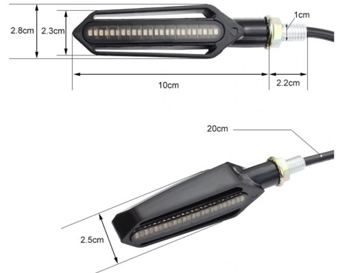 Dynamiczne kierunkowskazy (pływające) z wbudowanymi światłami stopu (na tył) oraz DRL do jazdy dziennej (na przód).