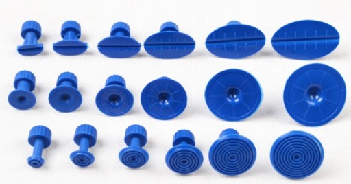 Zróżnicowana wielkości i kształt adapterów pozwoli na dopasowanie grzybka do każdego rodzaju wgniecenia.