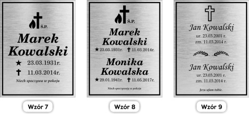 - Tekst, który ma się znaleźć na tabliczce (możliwa modyfikacja wzoru)