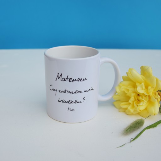 Kubek z indywidualnym nadrukiem to świetny prezent i pamiątka dla przyszłego świadka
