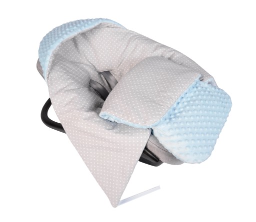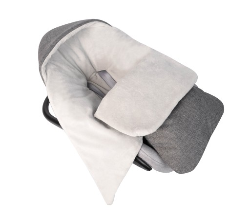 Posiada 3 szt uniwersalnych otworów na pasy bezpieczeństwa, dzięki którym śpiworek nie zsuwa się w foteliku samochodowym.
